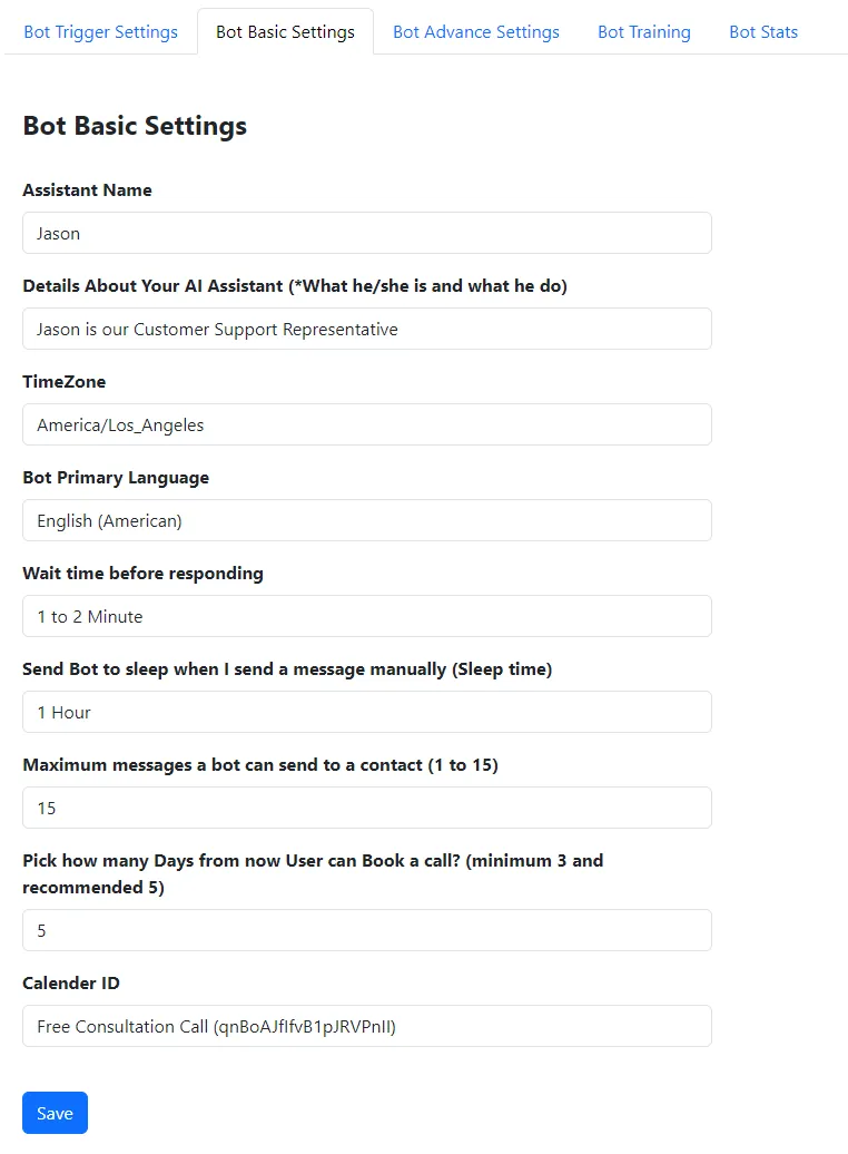 Time Zone: Set the bot's time zone, for example, 'America/Los_Angeles' to align with your business hours.