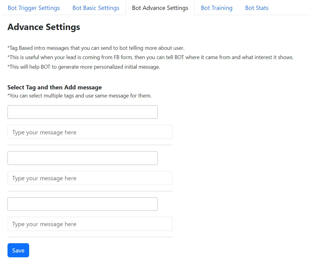 Perfect for general engagement, this setting allows your bot to filter replies based on tags you set for more targeted conversations.
